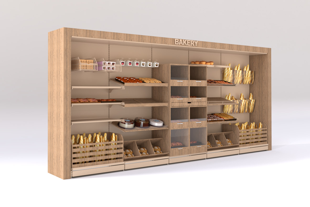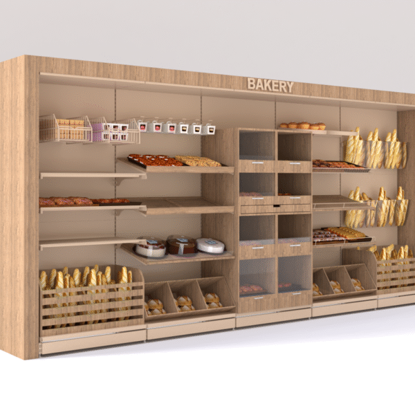 Unlu mamül reyonları, ekmek, poğaça ve pasta gibi ürünlerin sergilenmesi ve satışını optimize eder. Cantürk Raf, unlu mamül reyonları ile ürünlerin hijyenik ve şık bir şekilde sunulmasını sağlar. Raf aralıkları ve yükseklikleri ürün boyutuna göre ayarlanabilir.